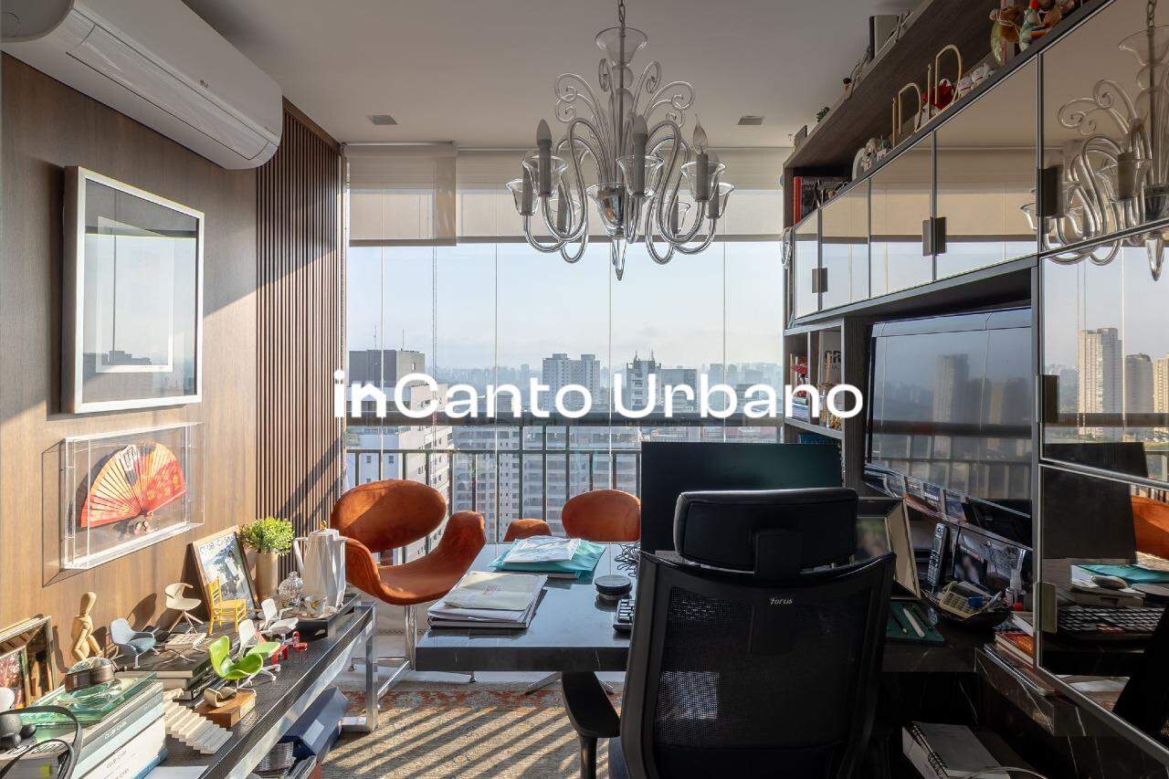 O living espaçoso integra-se a uma varanda gourmet convidativa, banhada por luz natural, perfeita para encontros ou momentos de pausa. Uma planta inteligente acomodou confortavelmente na reforma 3 suítes, cada uma oferecendo privacidade e aconchego na medida, além de um escritório integrado à varanda..