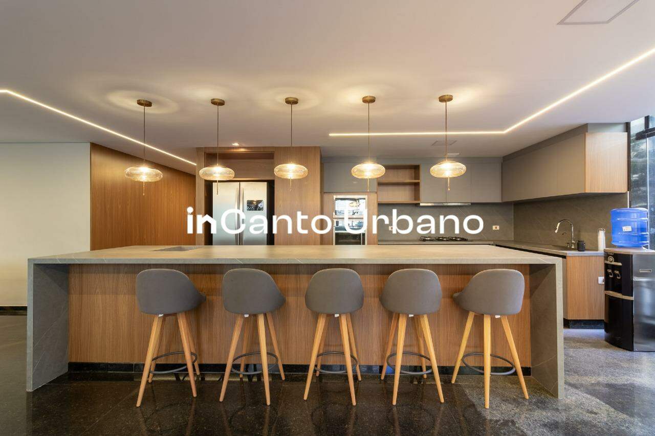 A cozinha espaçosa, com copa integrada, convida a experiências gastronômicas memoráveis. Área de serviço completa, com lavanderia e 02 quartos para funcionários, além de um depósito privativo no subsolo.